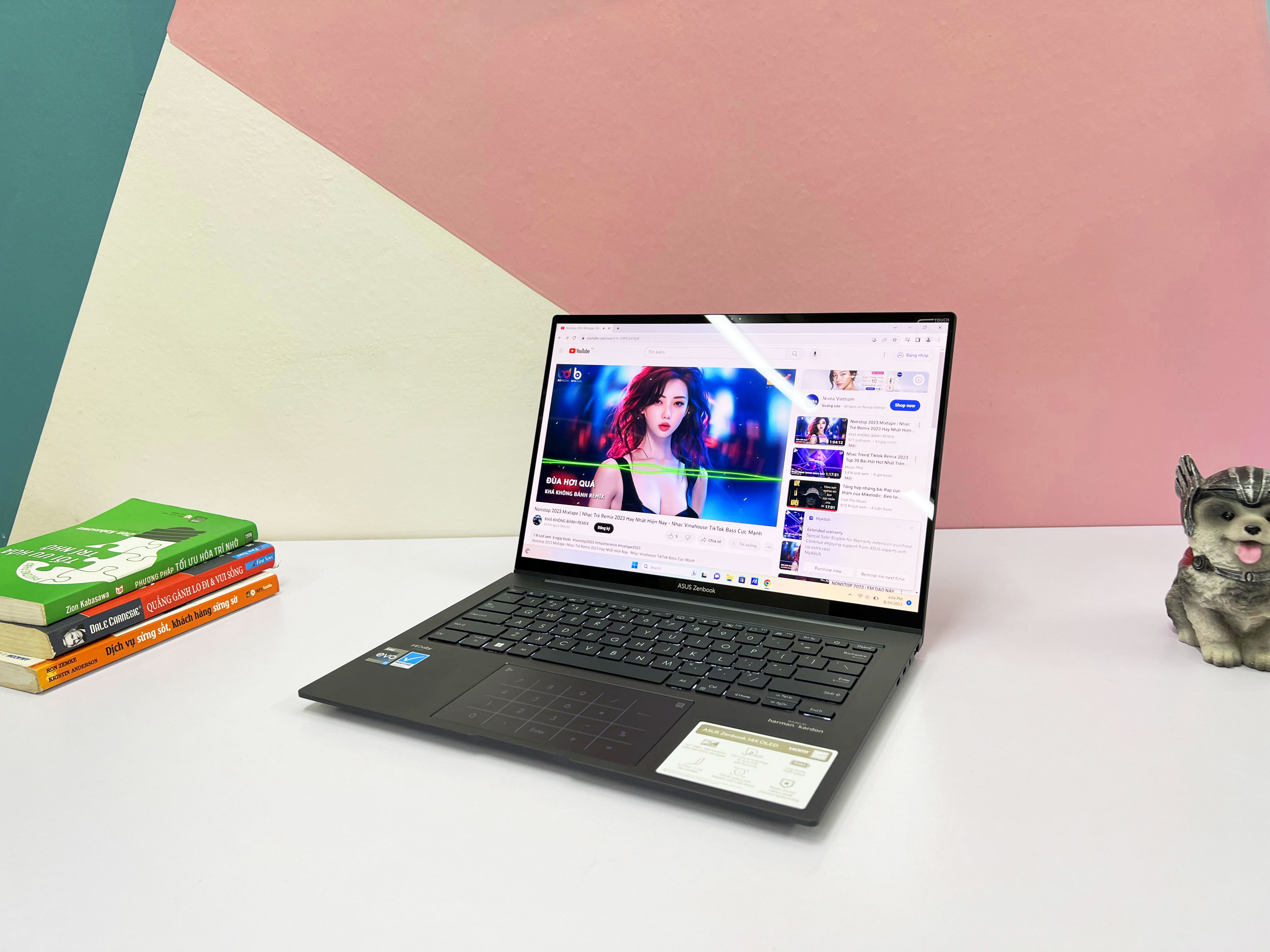 Còn về mặt trải nghiệm âm thanh, ở đây chúng ta sẽ có âm thanh đên từ hãng loa rất quen thuộc từ những dòng máy Q407, Q408, Q409 rồi. Harman kadon. Hãng sản xuất loa rất là nổi tiếng. Tích với công nghệ âm thanh Dolby ATMOS cho chúng ta 1 cái chất lượng âm thanh rất là tốt. Đủ to và âm bas cũng đủ chắc để mà chúng ta có thể nghe những dòng nhạc EDM, POP, Rock ..v…v…